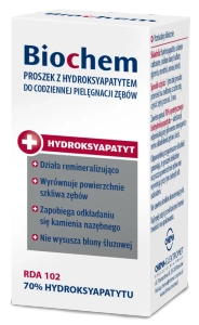- BIOCHEM: Proszek z hydroksyapatytem do codziennej pielęgnacji jamy ustnej. Produkt ten pomaga w utrzymaniu zdrowia zębów i dziąseł, zapobiegając rozwojowi próchnicy.