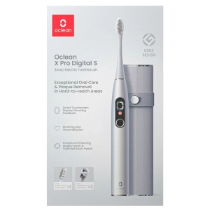 Szczoteczka soniczna Oclean X Pro Digital SREBRNA – Kompletny zestaw z etui i 3 dodatkowymi końcówkami